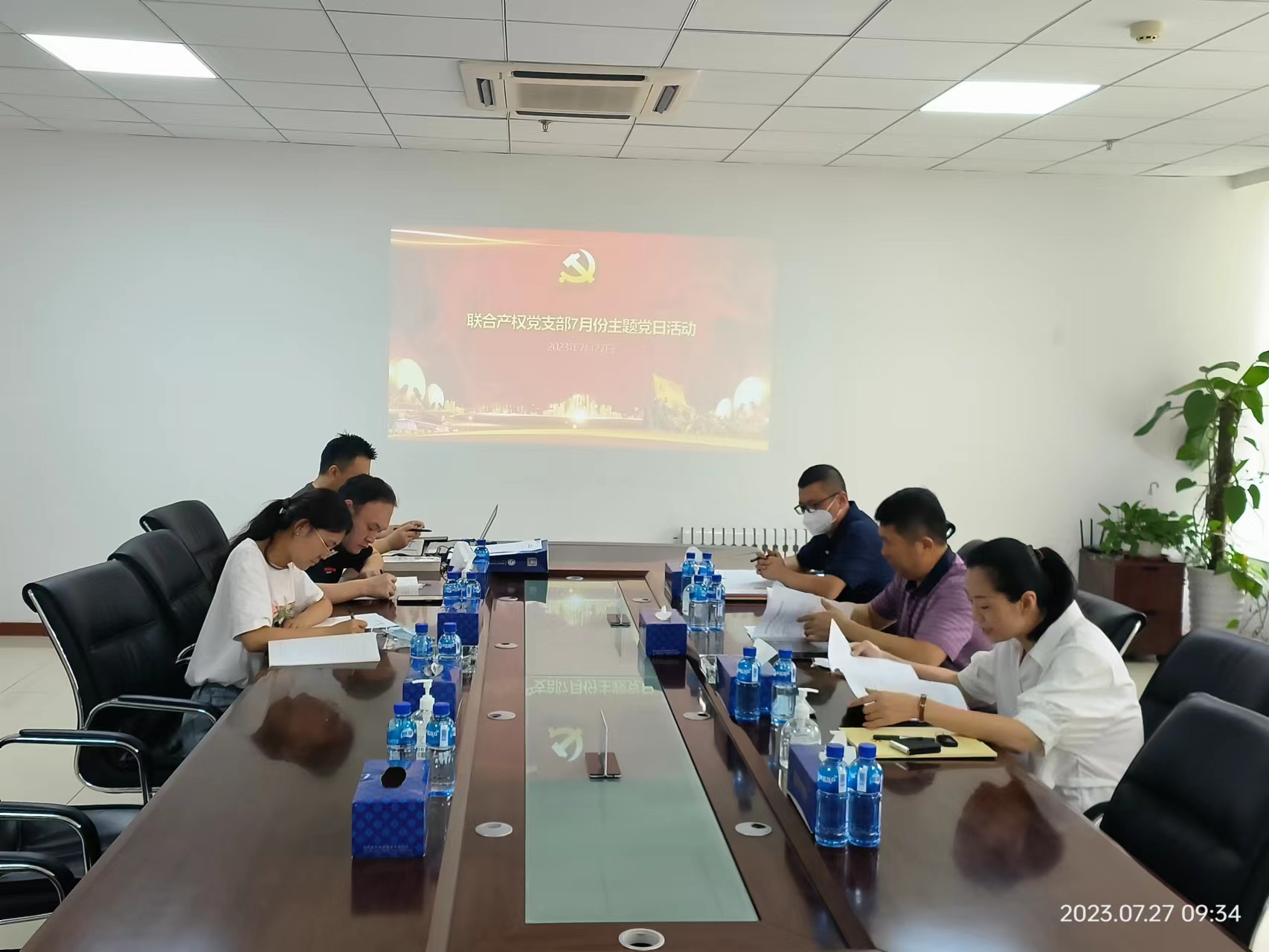 27日上午,聯(lián)合產(chǎn)權(quán)支部召開7月份主題黨日活動(dòng)。支委會(huì)上,首先落實(shí)“第一議題”制度,研究審議二季度黨員積分量化情況等工作。召開集體討論查找問(wèn)題專題會(huì)議,結(jié)合有關(guān)要求,集體討論查找問(wèn)題并研究整改措施。
