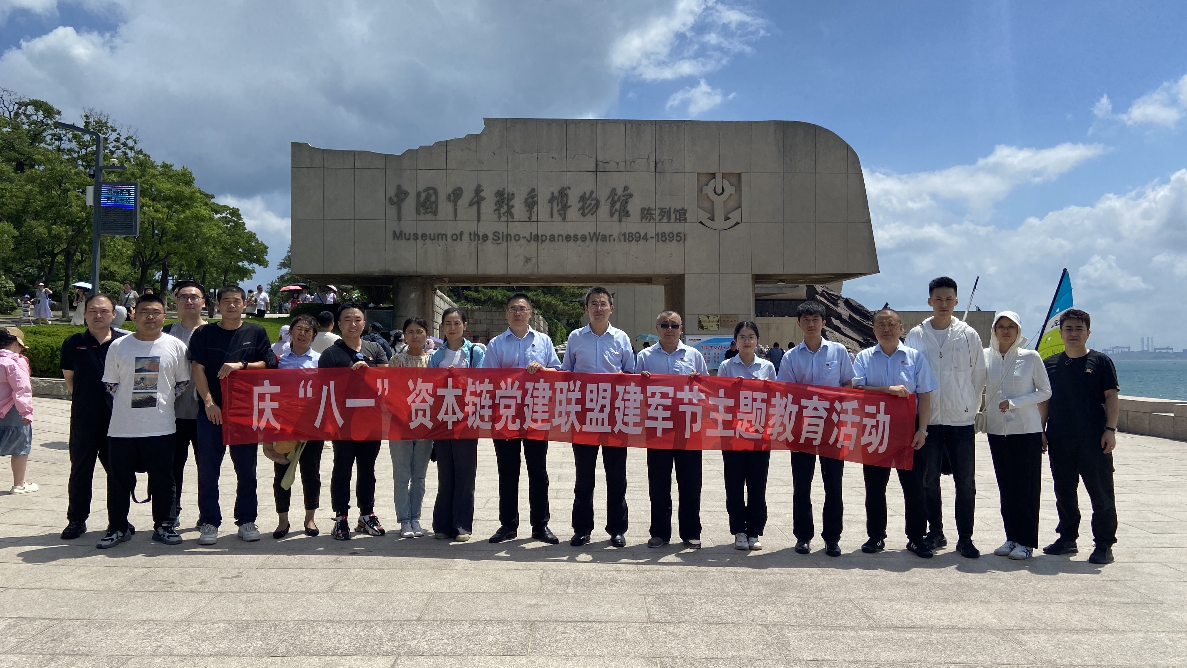 為慶祝中國(guó)人民解放軍建軍96周年,重溫人民軍隊(duì)的光輝歷程,弘揚(yáng)黨的優(yōu)良傳統(tǒng),提高黨員的黨性觀念,更好發(fā)揮黨員的先鋒模范作用。7月28日,藍(lán)天集團(tuán)聯(lián)合產(chǎn)權(quán)黨支部聯(lián)合資本鏈聯(lián)盟單位到威海劉公島全國(guó)愛(ài)國(guó)主義教育基地開(kāi)展慶“八一”資本鏈黨建聯(lián)盟建軍節(jié)主題教育活動(dòng)。