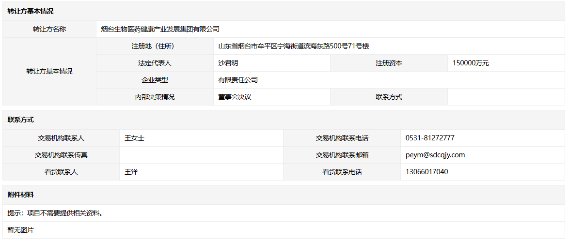 轉(zhuǎn)讓方:煙臺生物醫(yī)藥健康產(chǎn)業(yè)發(fā)展集團有限公司