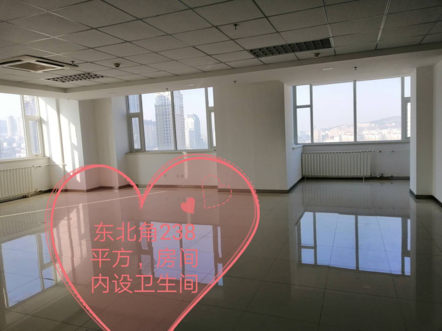 精裝修寫字間面積從48-238㎡不等,有不同種類的戶型,可滿足您各種需求;另有兩層未裝修的樓層也可供選擇;網點房一間面積277㎡,廣場場地同時對外出租。