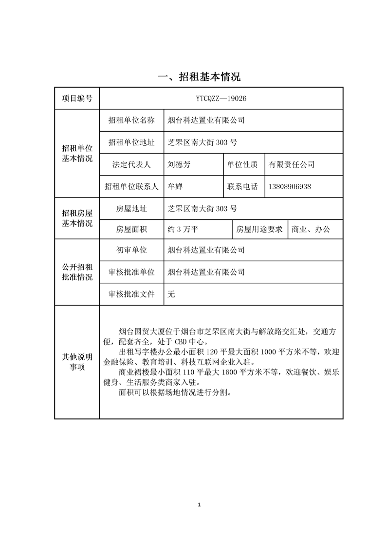 南大街303號(hào)國貿(mào)大廈招租項(xiàng)目